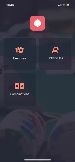 Training program selects different exercises and tracks the user's results. It also includes the game «Should I accept the bet». Here poker player is offered a set of cards and variants of possible answers.