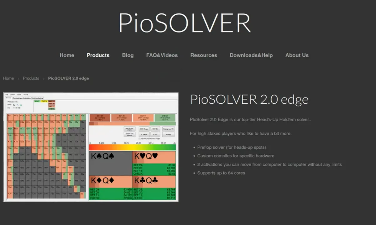 PioSolver is a GTO poker solver. This type of poker coaching software is especially popular among beginners because they don't need to spend months studying GTO theory alone. The PioSolver automatically adjusts the optimal game for specific situations (according to popular Nash equilibrium).