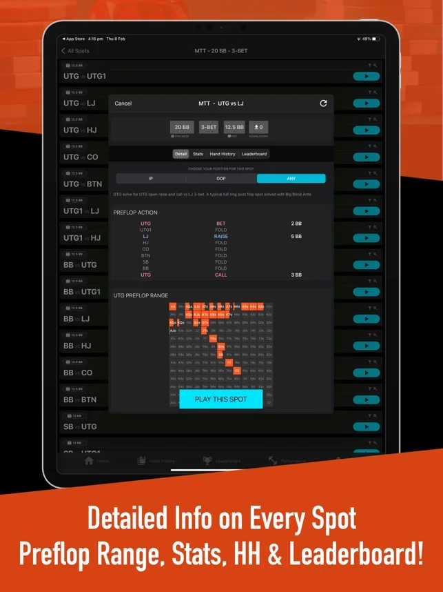 - GTO Trainer: you can play against virtual opponents to improve your understanding of GTO and fix leaks in your strategy;