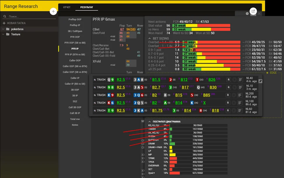 - Study the tendencies of the pool in Range Research. Thanks to player aliases you can find exhaustive samples for specific sizings and lines you are interested in. You can understand how different types of players (regs and fish) act on average. This is where you can find these hands in Range Research pop-ups: