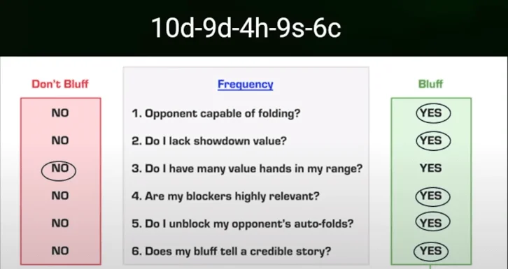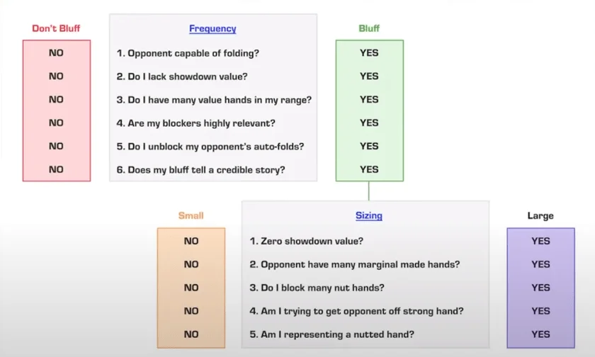 Draw yourself a similar flowchart or print out this one, and then practice determining the frequency of bluffs and its bet size using several examples of your own. And now I will show you how.
