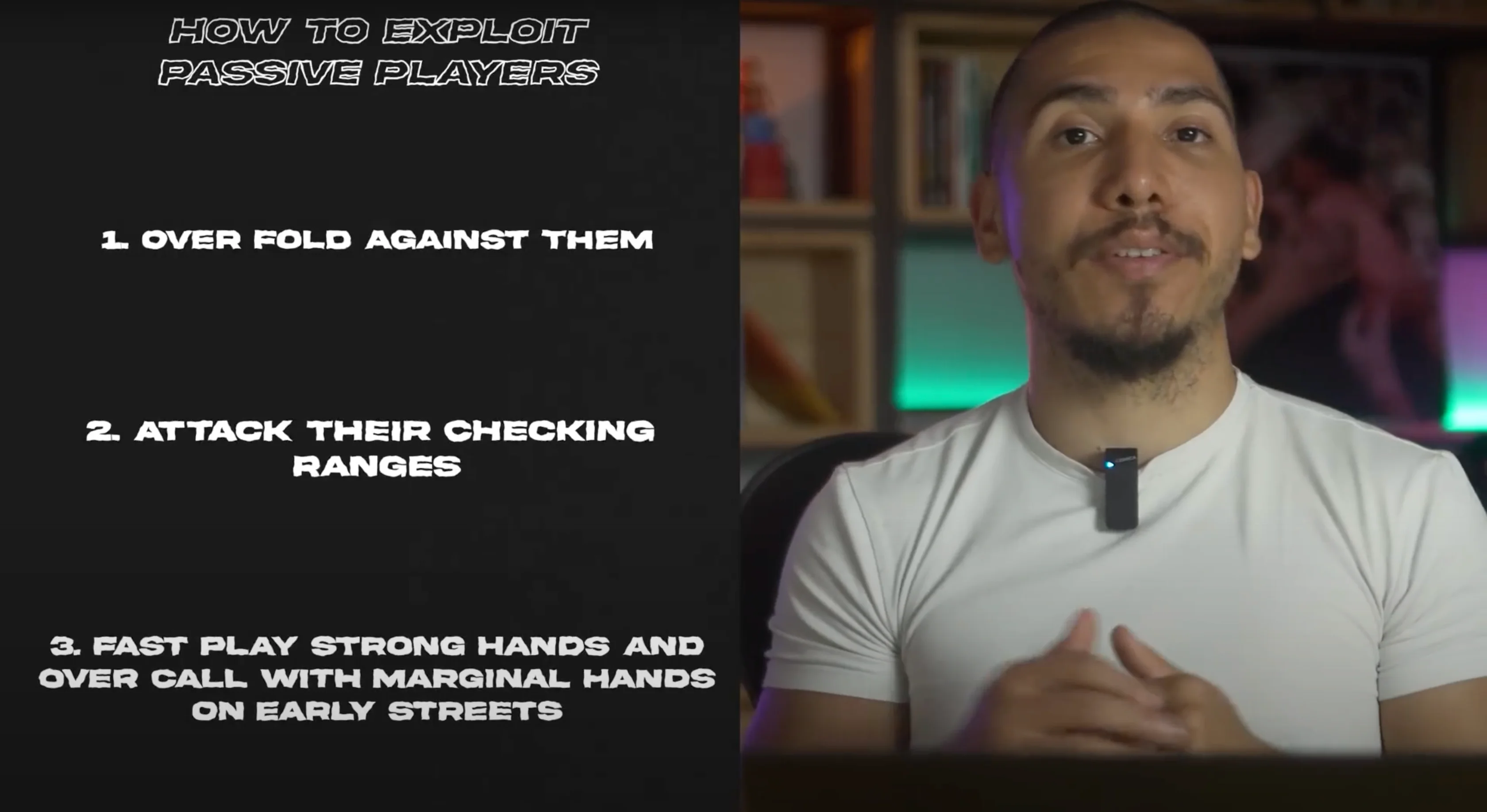 - In the third level, exploit passive players by fast-playing your strong hands on early streets and over-calling with marginal hands on early streets.