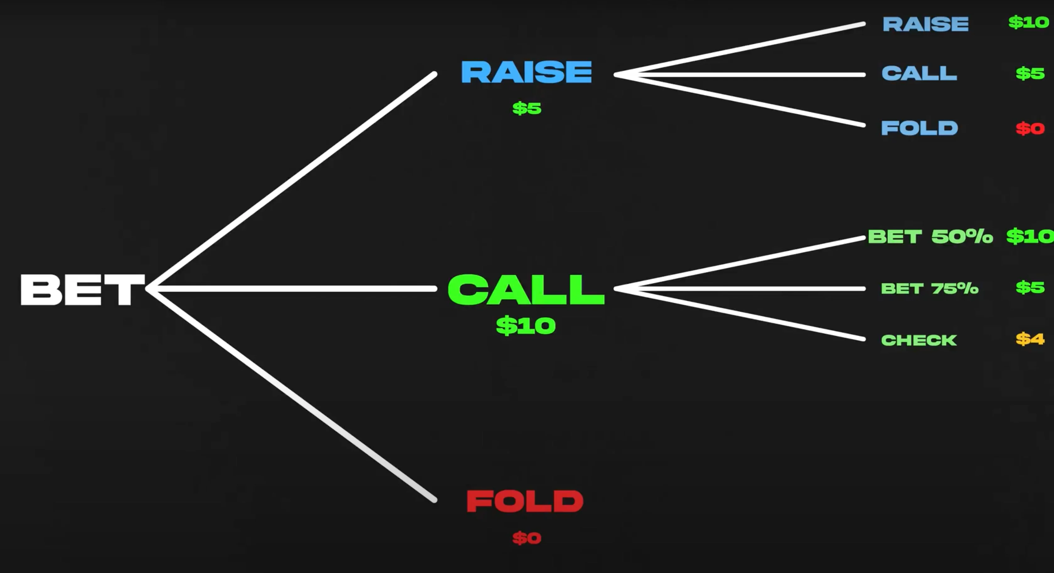 The way to understand the final level of exploitation is by realizing what someone means when they refer to the "game tree" in the context of poker. This term comes from the concept of tree diagrams, a visual representation of the possible outcomes of a problem, very often used in the field of mathematics.