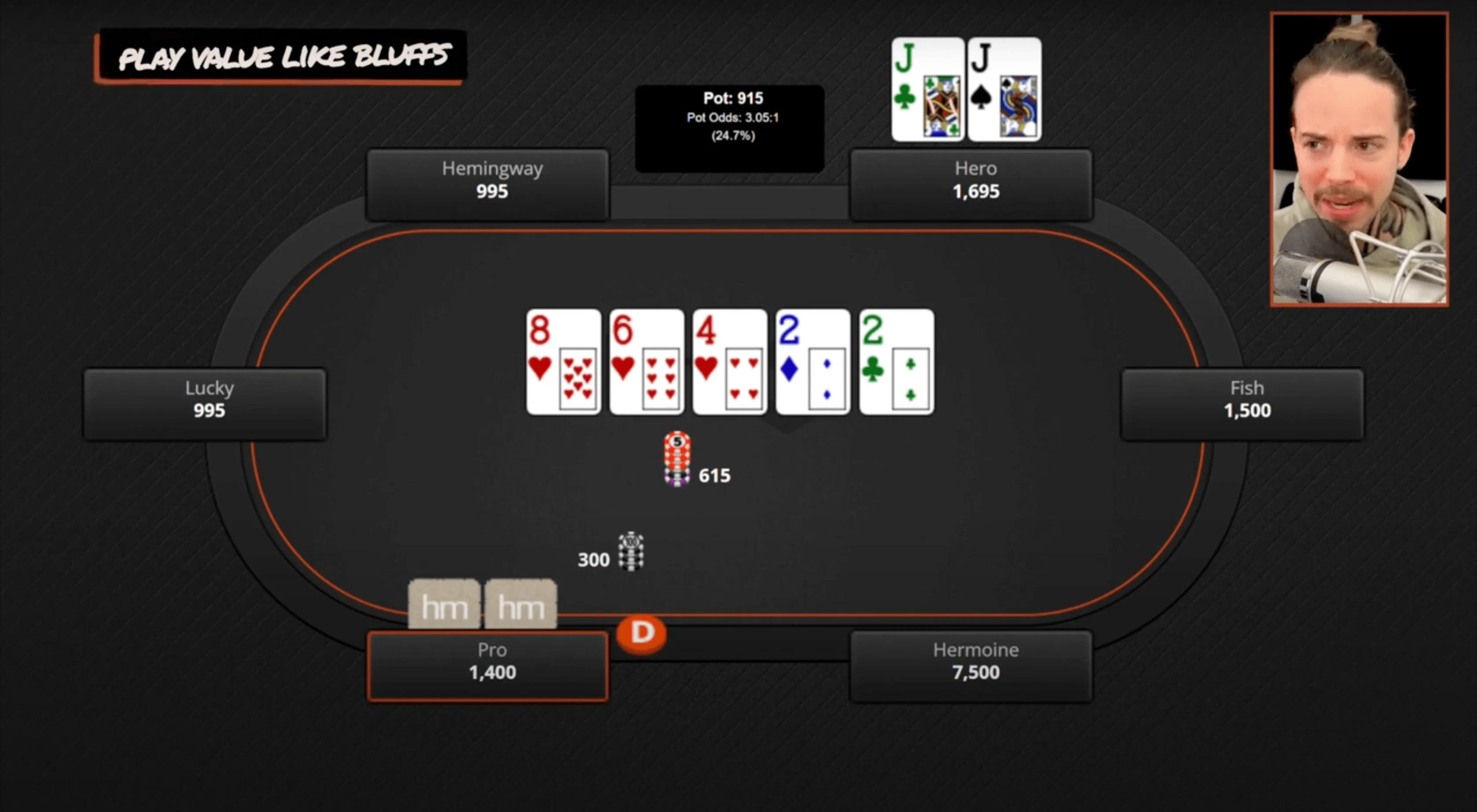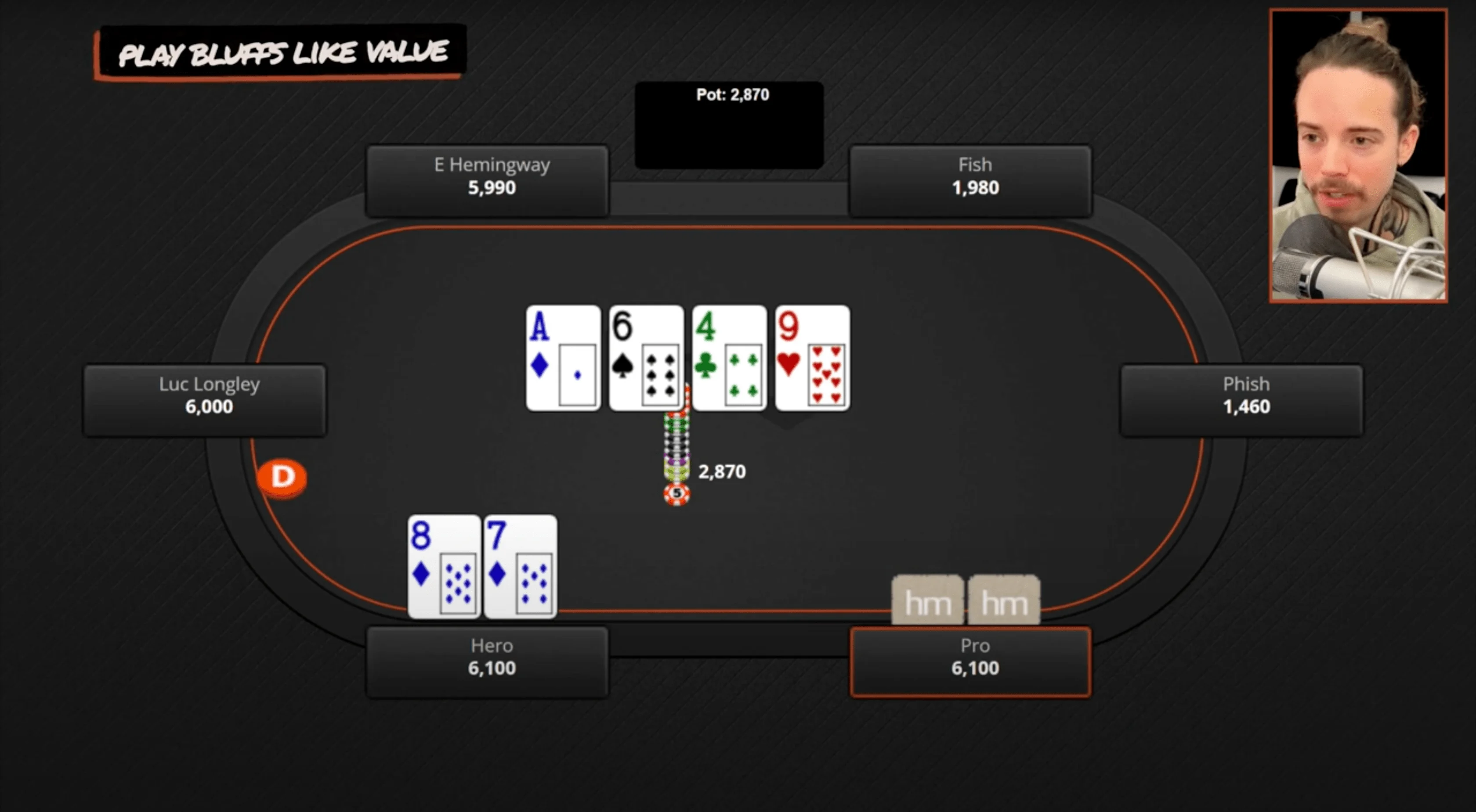 - Play your bluffs like they play value. When you're playing against live pros, you'll start to notice that certain lines are massively over-bluffed, while others are massively under-bluffed. As you gain more experience, you'll recognize these patterns. Essentially, you want to put a lot of your value in the lines that are over-bluffed and use the under-bluffed lines for your bluffs — that’s where you want to put a lot of your bluffs.