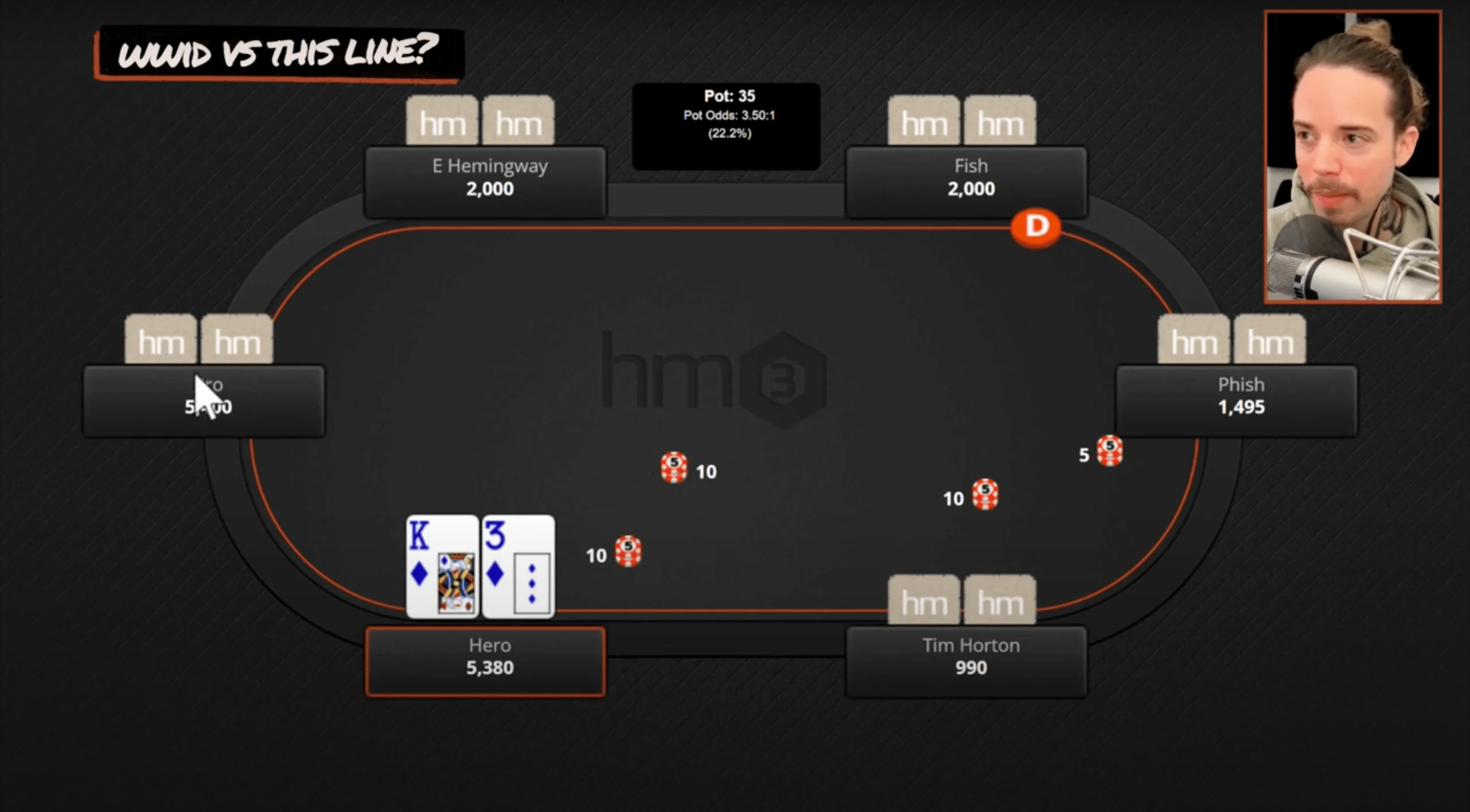 With a hand like King-3 on this flop, simply asking "what would I do versus this line?" makes sense. In this specific spot, continuing as a call quite often is the best play.