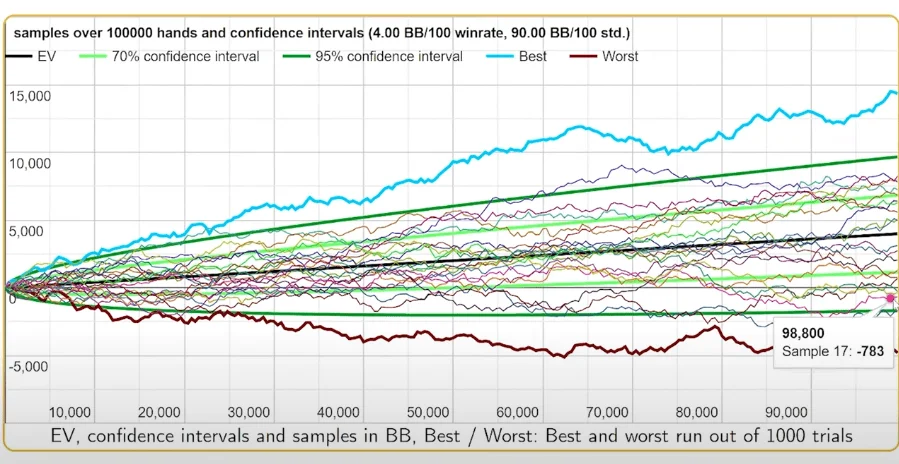 I mean if you look down below at the overall numbers probability of loss even for someone winning 4 bb/100, there is still 8% over a 100,000 hands.