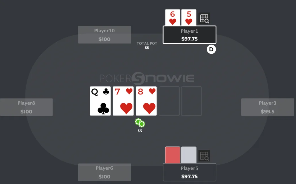 - Current Hand: 5♥6♥ is weak and has no showdown value.