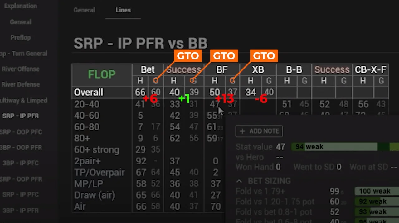 Well, as for the fact that you need to exploit weaknesses, you all know well. This is done by personally collecting information or searching for it on websites, in HUDs, etc. Then I assessed the degree to which the opponents' stats differed from those that cannot be exploited and thought through the type of countermeasure and bet sizes. The greater the deviation from GTO, the more it can be exploited.