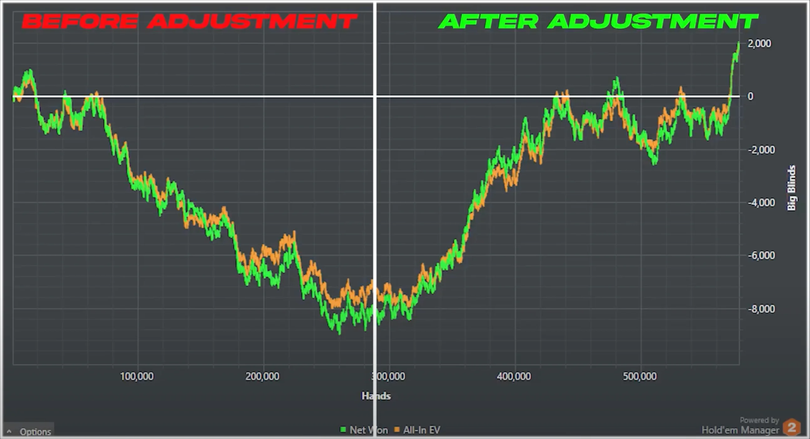 Now, what I wanted to tell you from the beginning is that the numbers I use to simulate a mistake in the big blind strategy are not fictitious or random.