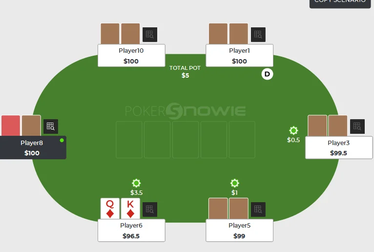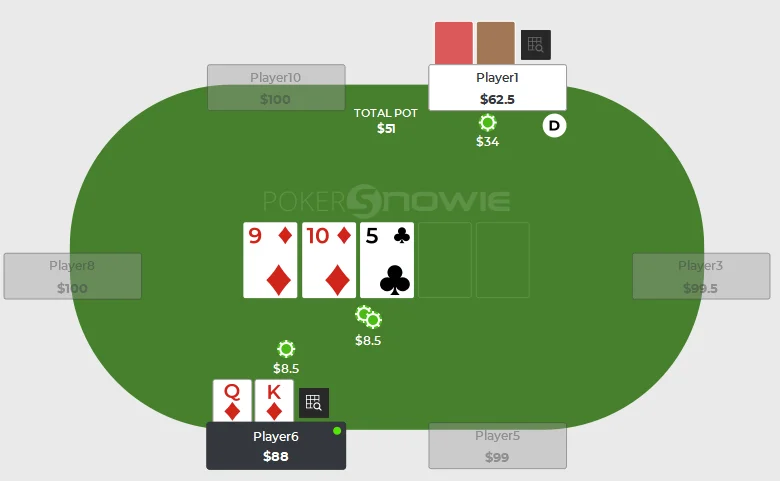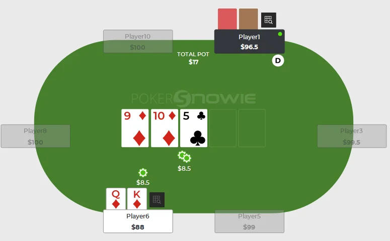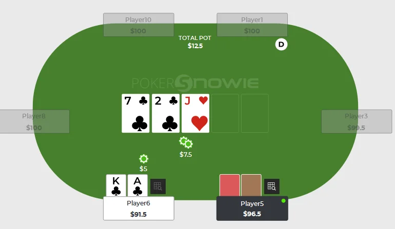 Suppose you are Player 6. In this street (flop), no one has placed any chips before you.